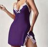 Elegantes Übergrößen-Nachthemd mit tiefem V-Ausschnitt, Spitze, Schleife und Schlitz
