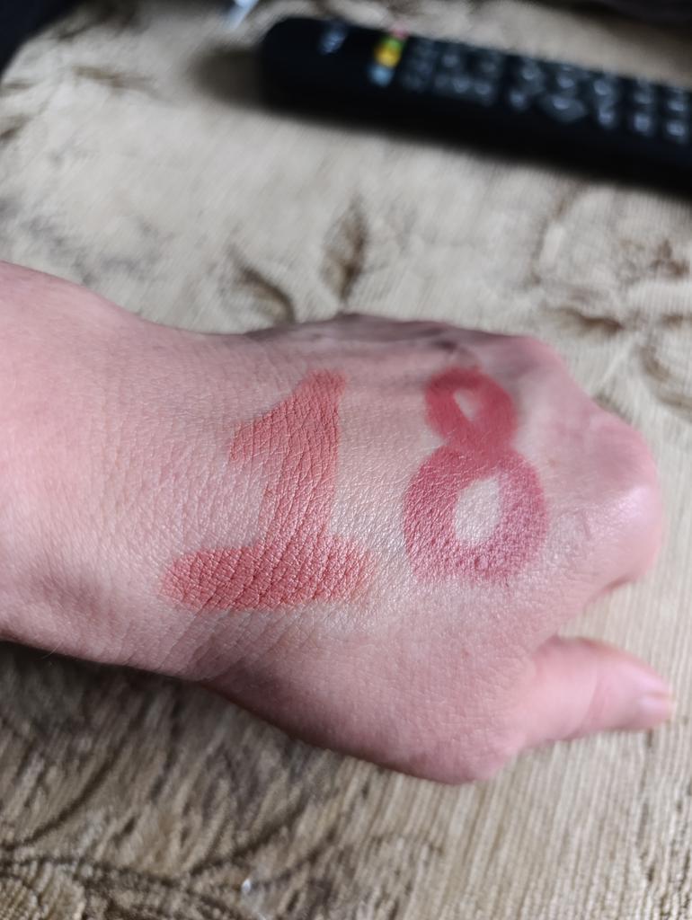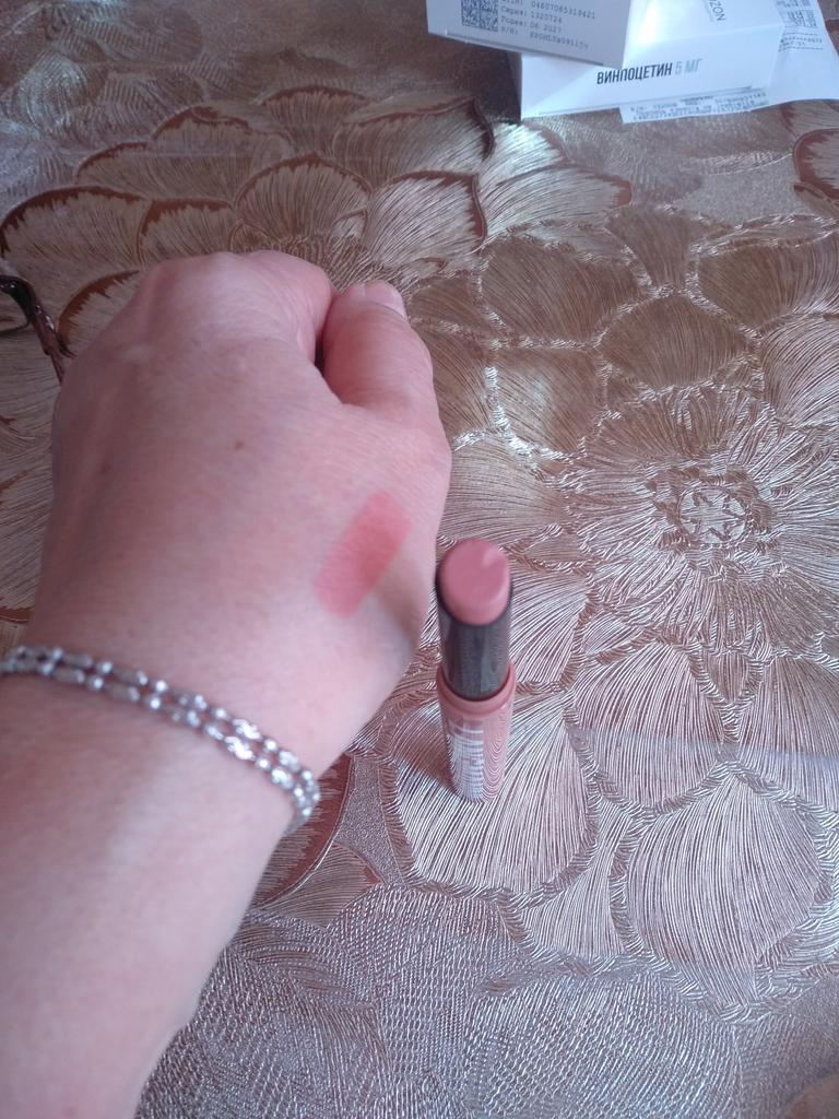 Erstaunliche Qualität, die Farbe ist nicht so gesättigt, aber gut, sie spendet Feuchtigkeit und trocknet die Haut der Lippen nicht aus.