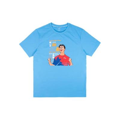 Li Ning Badminton Serie Charakterdruck Rundhals Kurzarm T-Shirt Herren Oberteile Blau AHSSC11-2