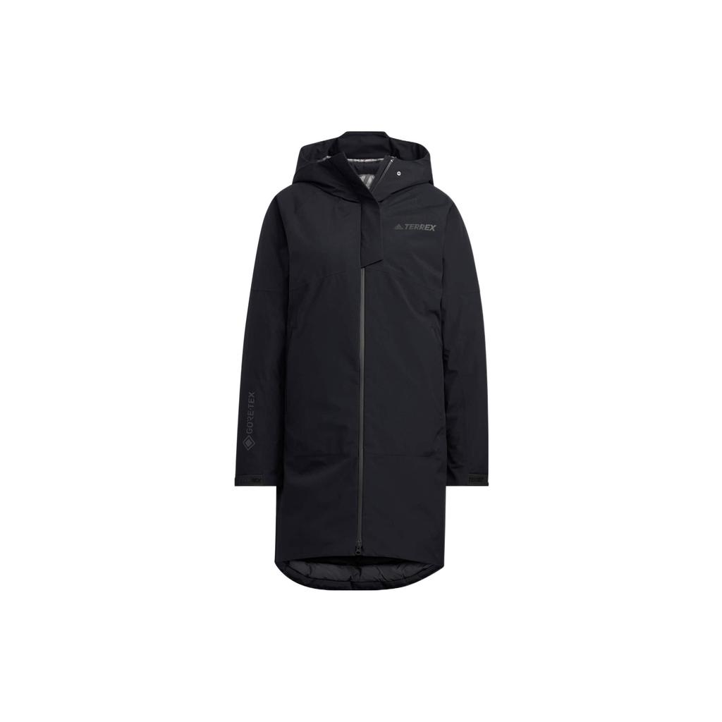 Adidas Terrex W Gtx Gd Jacke Logo-Print Einfarbig Mittellang Kapuzen-Daunenjacke Damenjacke Schwarz HN2001