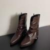 Damen Schuhe im Sale Neue Ärmel Damen Stiefel Winter Spitzschuh Einfarbig Warmhalten Kurzer Schaft Niedrig Absatz Mode Stiefel