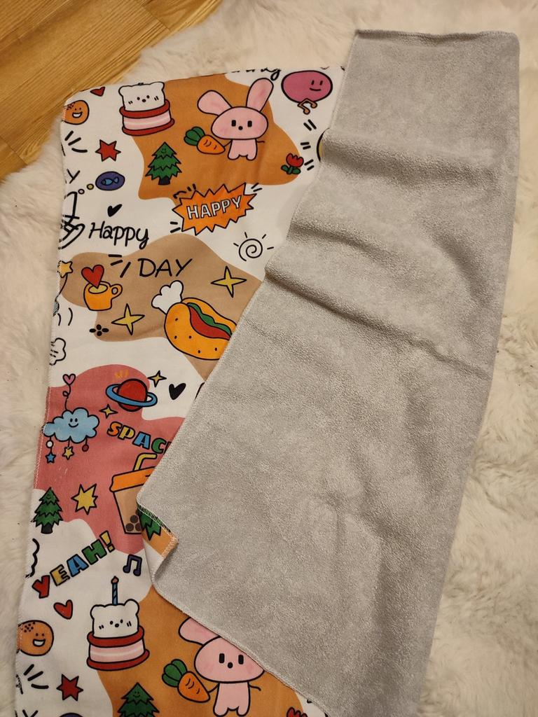 Hält gut, wenn es eingewickelt ist. Diese Decke hält von selbst und die Katze kann sich nicht wie bei einem Handtuch entblößen.