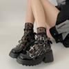 Nieten Dekor Chunky Plattform Punk Stiefeletten Frauen Winter Pu Leder Schwarze Stiefel Frau Metall Schnalle Gothic Schuhe