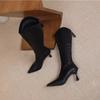 Kniehohe Stiefel für Damen, Stretch, modisch, elegant, für Tanzpartys, Abschlussballschuhe, High Heel, moderne lange Stiefeletten für Damen