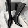 Spitze Zehen Damen Kniehohe Stiefel Mode Weiches Leder Dicke Absätze Schuhe Herbst Winter Damen Prägnante Lange Damenstiefel