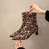 Designer Leopard Print Frauen Stiefeletten Mode Spitzschuh Kurze Booties Prägnante Dicken Absätzen Botas De Mujer