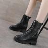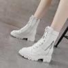 Neue Damen Leder Punk Stiefel Hohe Plattform Chunky Sneakers Herbst 9CM Keilabsatz Mid-Calf Stiefel Frau Winter Motorradstiefel