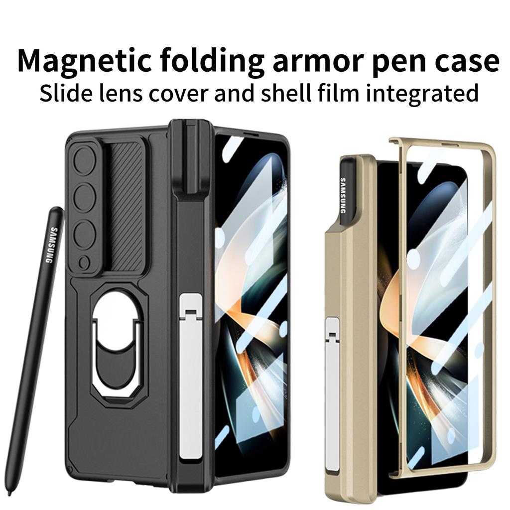 Mit Stifthalter Magnetische Panzerhülle für Samsung Galaxy Z Fold 6 4 5 3 2 Autohalter Ring Schiebekamera 360 Vollschutz Ständerhülle