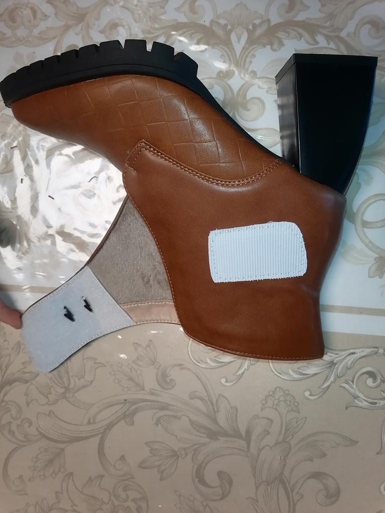 Kamen abgenutzt an, als hätte sie schon jemand benutzt. Der Verschluss ist ein weißer Klettverschluss! Die Farbe ist unangenehm rötlich(((