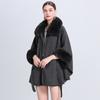 Winter-Damen-Schal-Cape-Jacke, Pelzkragen, mittellanger Absatz, geschnürte Strickjacke, große Yards, Sieben-Punkt-Ärmel, Tweed-Jacke