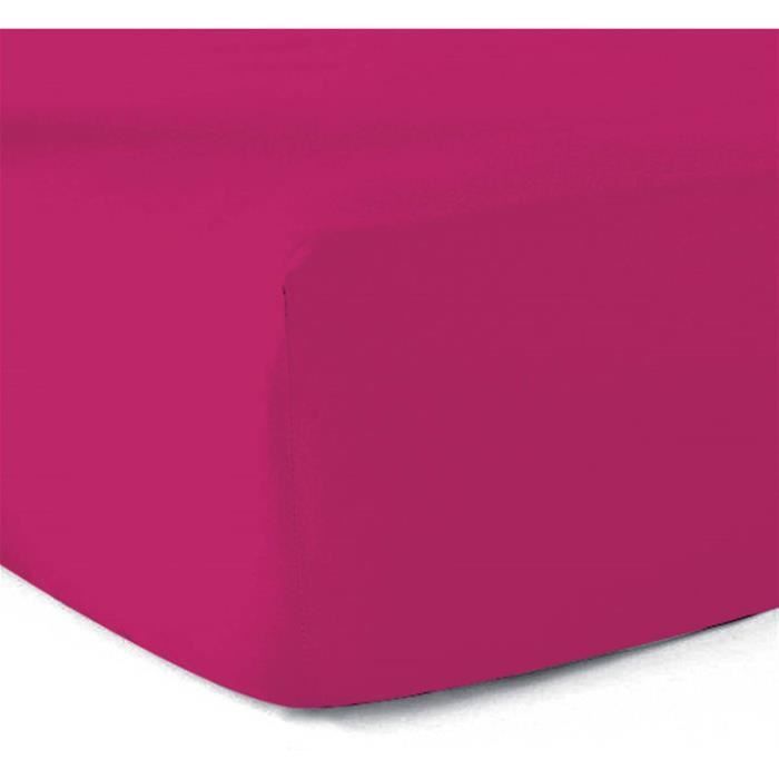 Drap Housse - Polycoton - 90x190 cm - Fuchsia - 57 Fils/cm2 - Lavable jusqu'à 60°