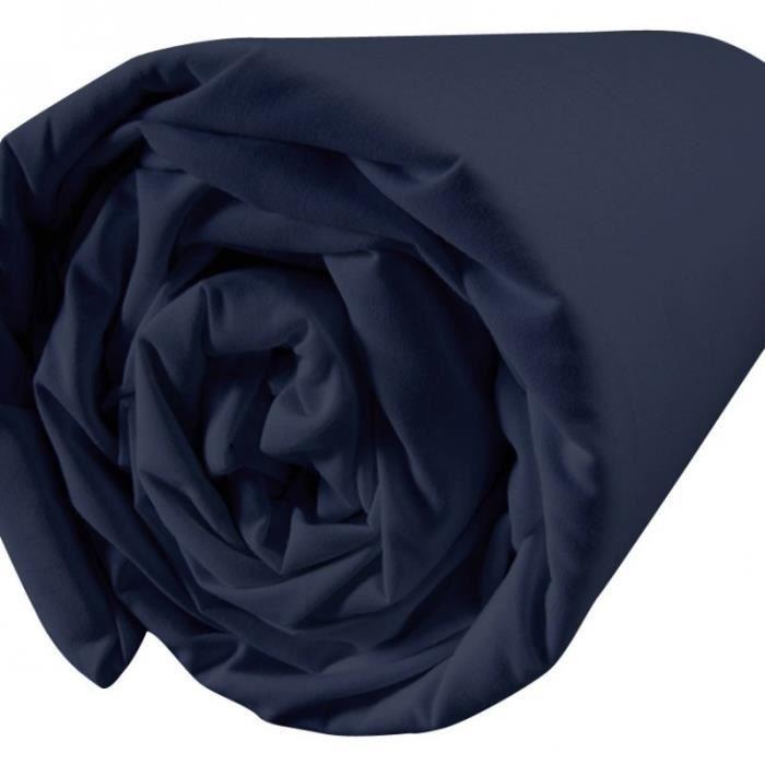 Drap housse - TARANTINO - 160x200 cm - 100% coton - Couleur indigo - Uni