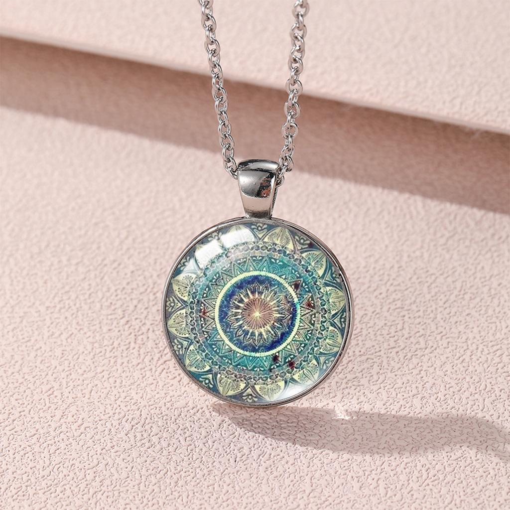 Halskette mit Anhänger im Boho-Stil. Boho-Blumenmuster in Bronze. Anhänger mit Gliederkette.