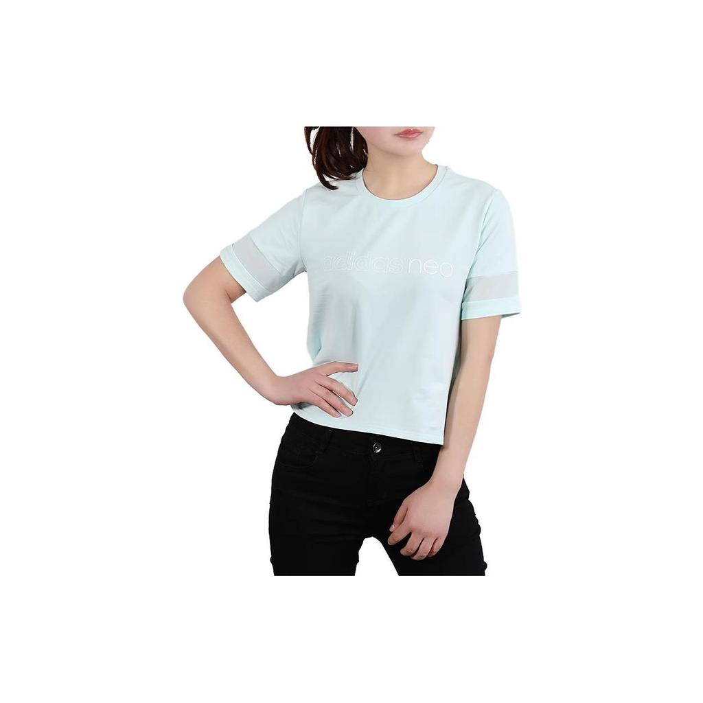 Adidas Neo Round Neck Color Block Short Sleeve T-Shirt Women T-Shirts Light-Blue DZ7616