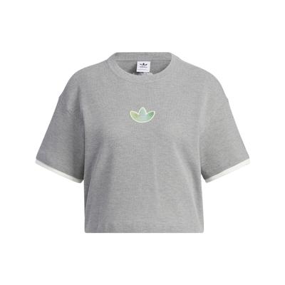 Adidas Originals Trefoil Logo Print Crew Neck Short Sleeve T-Shirt Women Tops Gray H22755