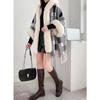 Damen Winter England Karomuster Dickes Samt Warmes Poncho Oberbekleidung Fledermausärmel Gestrickt Kunstkaninchenfell Locker Umhänge Mantel Mit Hut