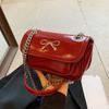Tasche für Frauen Neue Ketten-Umhängetasche Luxus Designer Metallschleife Einzelne Schulter Kleine quadratische Taschen Mode Rote Klappe Handtasche