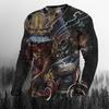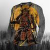 Super cooles Vintage-T-Shirt für Herren im japanischen Samurai-Stil, O-Ausschnitt, Herrenbekleidung, übergroße, lässige Langarmoberteile, 3D-bedrucktes T-Shirt