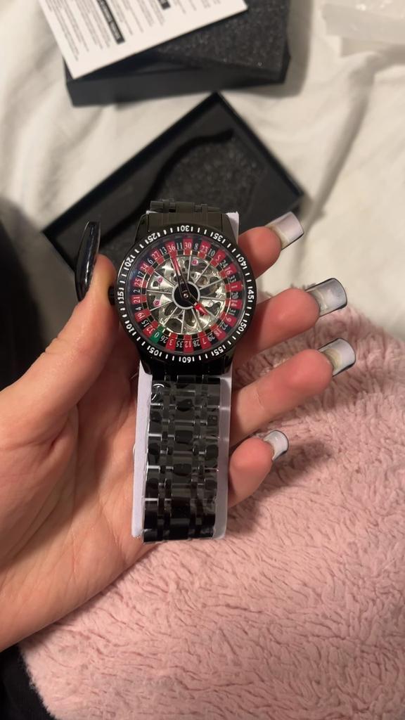 Dulunwe Schwingendes Drehzifferblatt-Design, hohle Skelett-Uhren, trendige Herren-Armbanduhr, Roulette-Rad, automatische mechanische Uhr