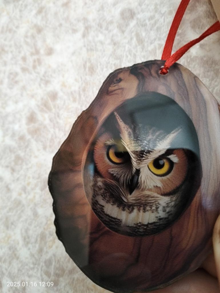 Eule 🦉 Weihnachtsbaumanhänger 🎄 Er ist flach. In weniger als einem Monat in Spanien angekommen 🇪🇸