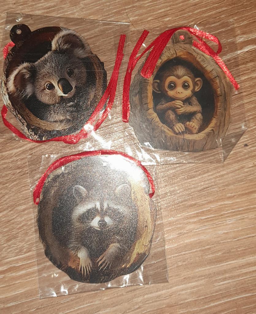Neu Tierwelt Eule Waschbär Nilpferd Weihnachtsschmuck Weihnachtsbaum Anhänger 2D Acryl Flache