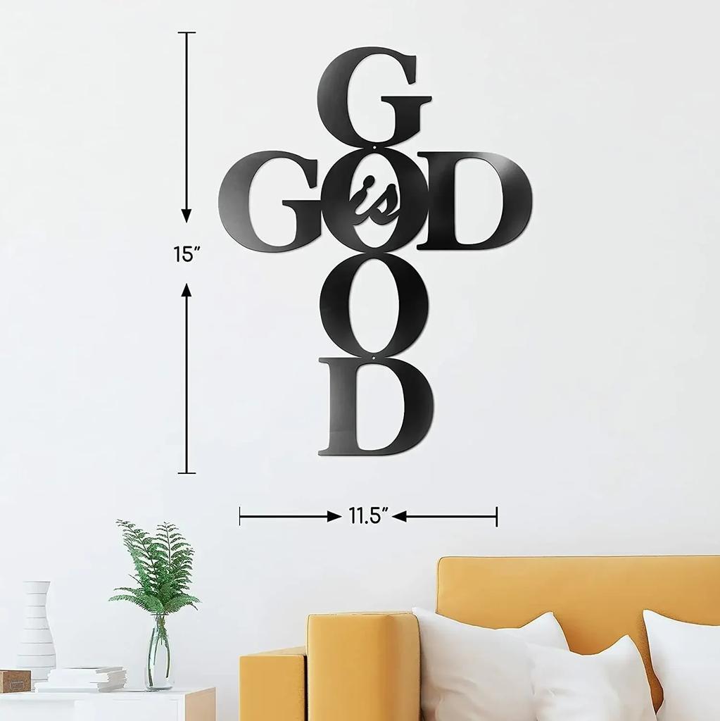 1 Stück Schwarzes Metallkreuz Gott ist gut Schild Wanddeko Religiöse Küchendeko für Wohnzimmer Schlafzimmer Arbeitszimmer Veranda Dekoration