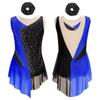 Eiskunstlauf-Tanz-Outfit für Mädchen, glitzernder Strass-Trikot in Farbblock-Optik, durchsichtiges Netzgewebe, Patchwork, rhythmische Sportgymnastik, Tanzbekleidung