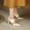 Mode Französische Stiletto High Heel Sandale Spitze Zehenpartie Einfarbig Damenschuhe Leder Formell Pumps mit Absatz Damensandalen Übergröße 40