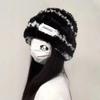 Damen Gestrickte Streifen Mütze Winter Zeigt Gesicht Klein Plüsch Warm Verdickt Großer Kopfumfang Ohrenschutz Umschlagmütze