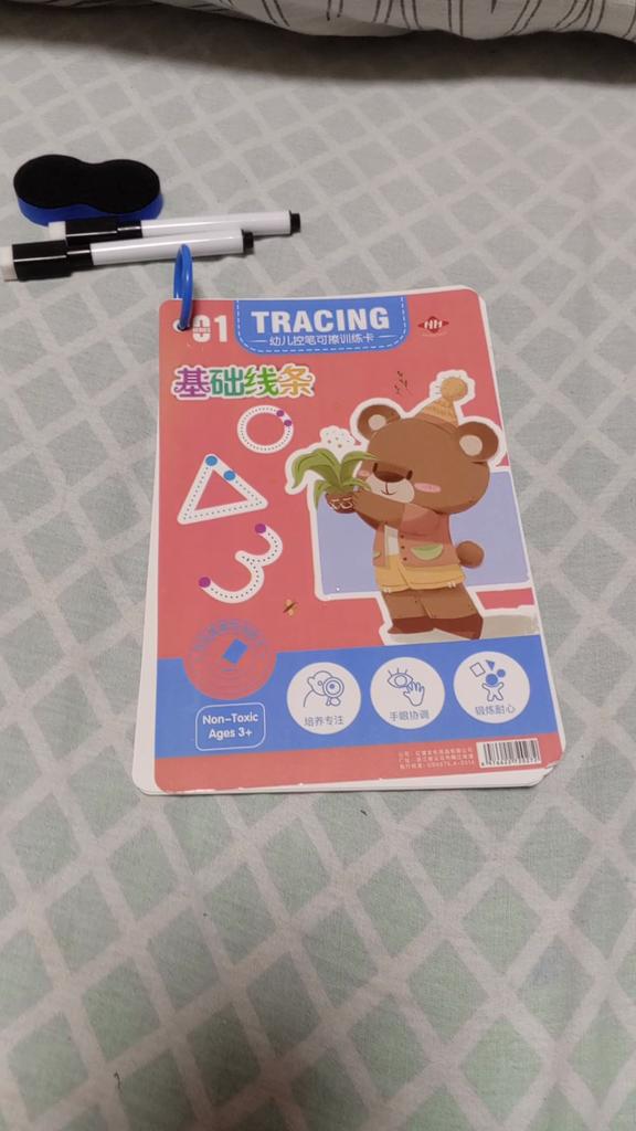 Tolles Buch, das Kind mag es sehr (3 Jahre). Es malt gerne Buchstaben und Zahlen nach.