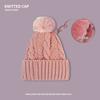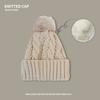 Innen Samt Acryl Strickmützen Damen Herbst Winter Dick Warm Bommelmütze