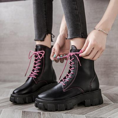 Neues Produkt Taschen-Motorradstiefel Damen Plateauschuhe Schnürschuhe Dicke Sohle Schwarze Schuhe Damen Halb Botas Mujer