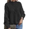 Damen Schwarzer Lockerer Pullover Hoher Kragen Bequemer Kragen Pullover Einfarbig Gestrickt Langarmpullover