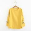 Baumwolle Bestickt Langärmlig Übergröße Basis-Shirt Frühling Sommer T-Shirt Retro Damen Weißes Oberteil T-Shirts Damen