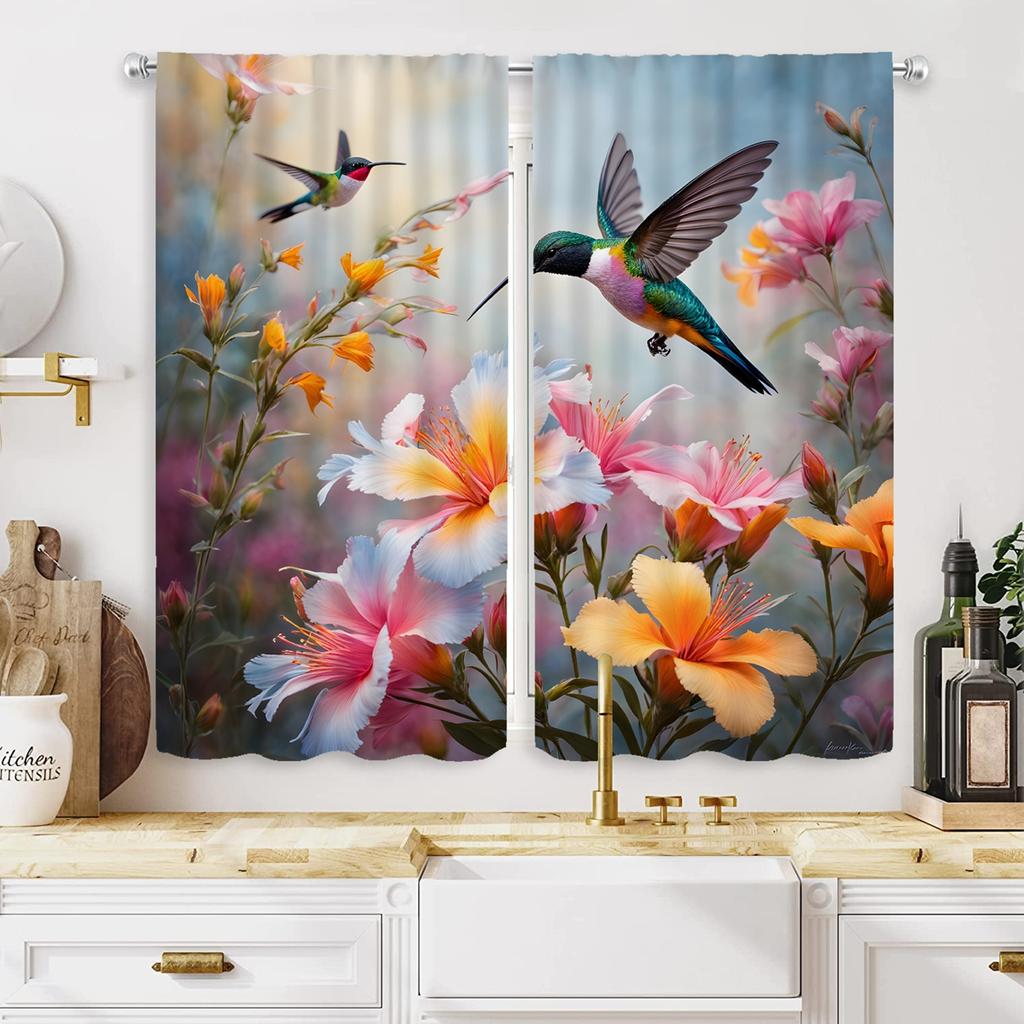 2 Stück HD Blumengarten fliegender Specht dekorativer Vorhang Rosa Bindeband digital bedruckter Vorhang Heimdekoration Stil Dekoration