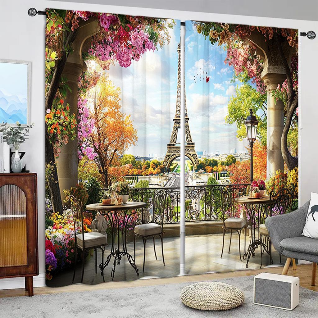 2 Stück Berühmter Eiffelturm Bedruckter Vorhang für Heimdekoration - Stangentaschen-Fensterbehandlung für Schlafzimmer, Büro, Küche, Wohnzimmer