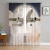 Flugzeug Sonnenuntergang Moderne Vorhänge für Wohnzimmer Transparente Tüllvorhänge Fensterschleier für das Schlafzimmer Zubehör Dekor
