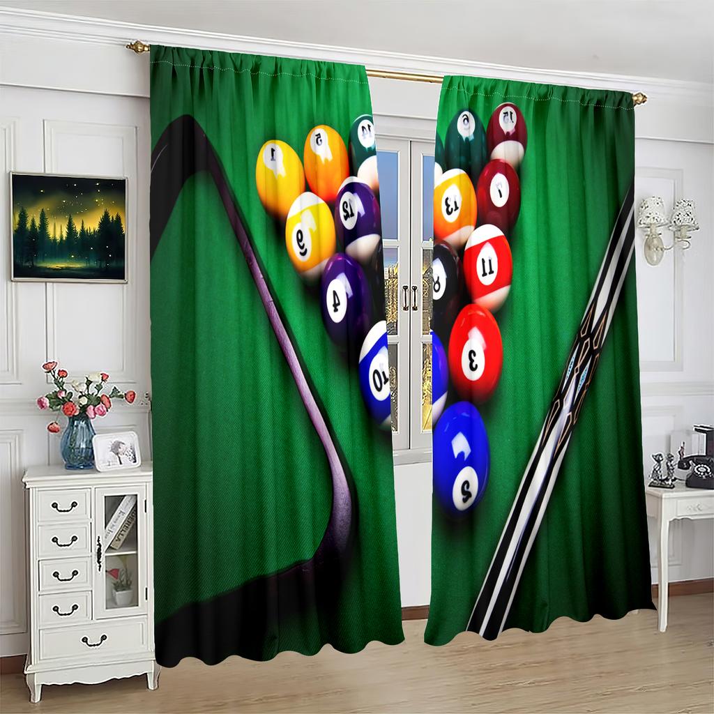 2 Stück - Billarddruck-Vorhang - Polyestermaterial - geeignet für Schlafzimmer, Wohnzimmer und Arbeitszimmer als Sichtschutzvorhänge
