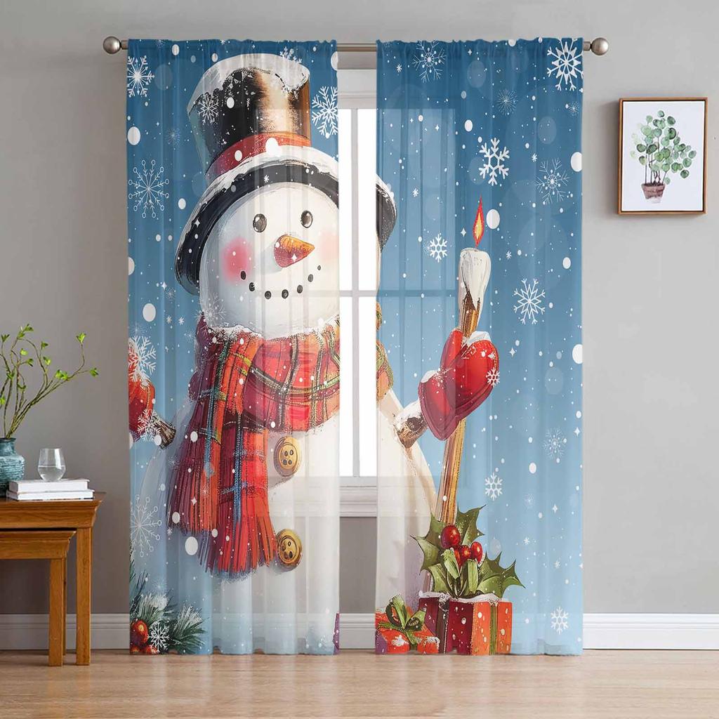 Weihnachten Schneemann Schneeflocke Rot Blau Vorhänge Für Wohnzimmer Schlafzimmer Heimdekoration Fenster Voile Tüll Vorhang Drapierungen