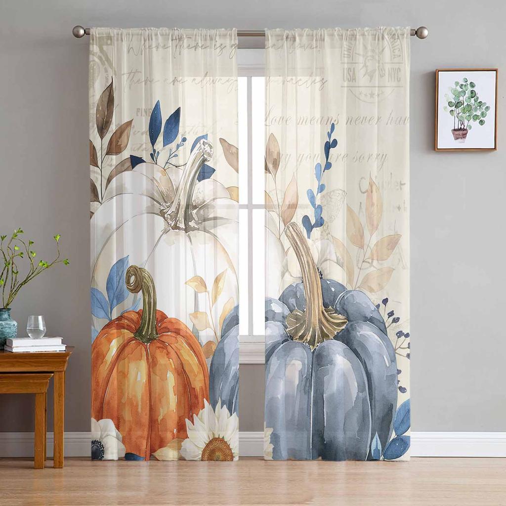 Thanksgiving Autumn Leaf Pumpkin Sheer Curtains for Kids Bedroom Living Room Voile Window Curtains Tulle Drapes