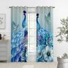 Retro Vorhänge mit floralem Pfauenmuster, geeignet für Schlafzimmer-, Wohnzimmer- und Küchendekoration, lichtdurchlässige Vorhänge 2 Stück