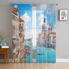 Greece Santorini Blue Roof Church Tulle Sheer Window Curtains for Living Room Kitchen Children Bedroom Voile Hanging Curtain