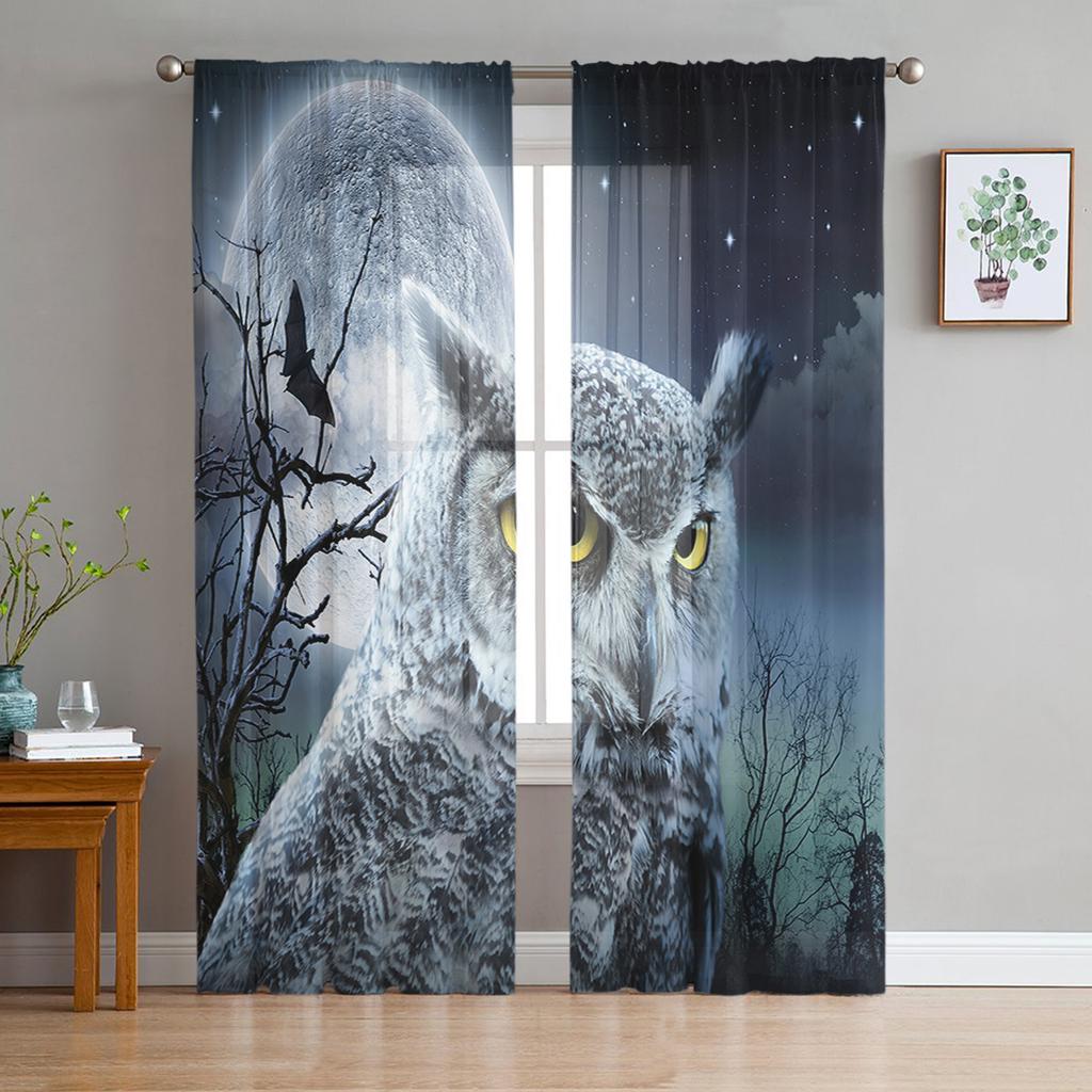 Moon Owl Bat Night Spooky Forest Chiffon Sheer Curtains for Living Room Bedroom Home Decor Window Voile Tulle Curtain Drapes