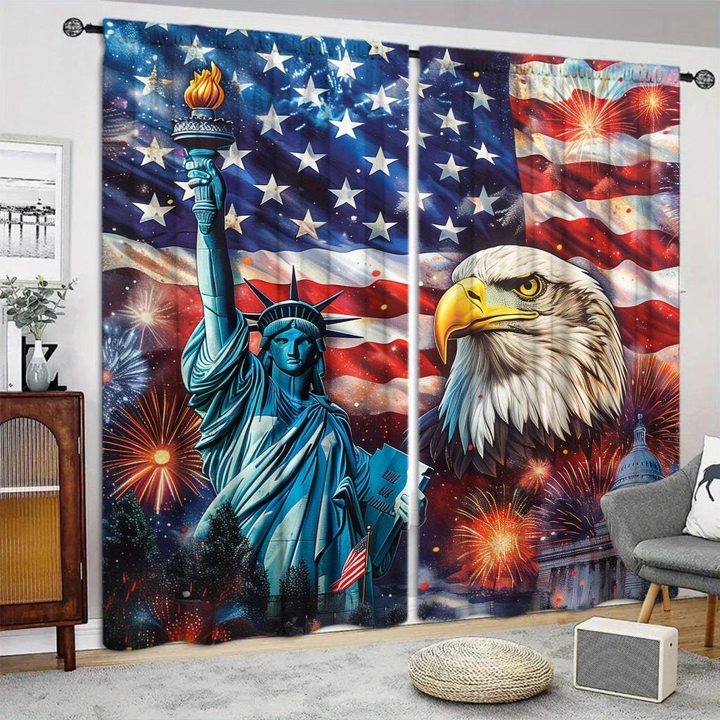 Unabhängigkeitstag der Vereinigten Staaten Flaggenvorhang für Heimdekoration-Stangentasche Fensterdekoration für Schlafzimmer, Küche, Wohnzimmer