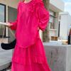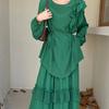 Koreanisches asymmetrisches Rüschenoberteil für Damen, lockere Schnürung an der Taille, schlank machendes, ausgehöhltes Hängegefühl, großer Swingrock, 2-teiliges Set