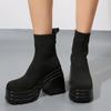 Mode Damen Plateau Stiefeletten Hohe Absätze Mode Sockenstiefel Strickschuhe 2025 Trend Winter Pumps Chelsea Boots Neu Mujer Botas