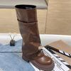 Mode Damen Plateau Hohe Stiefel Leder Kniehoch Flache Schuhe Frau 2025 Trend Wintermode Kleid Goth Retro Motorradstiefel Mujer