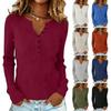 Lässiges Langarm-Henle-Shirt für Damen, Rippstrick-Bluse, Tunika-Oberteile mit Knöpfen