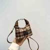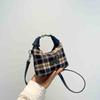 Herbstmode Kariertes Canvas Damen Tasche Trendiger PU-Leder Schultergurt Mini Umhängetaschen Damen Niedliche Lippenstift Münzbörse