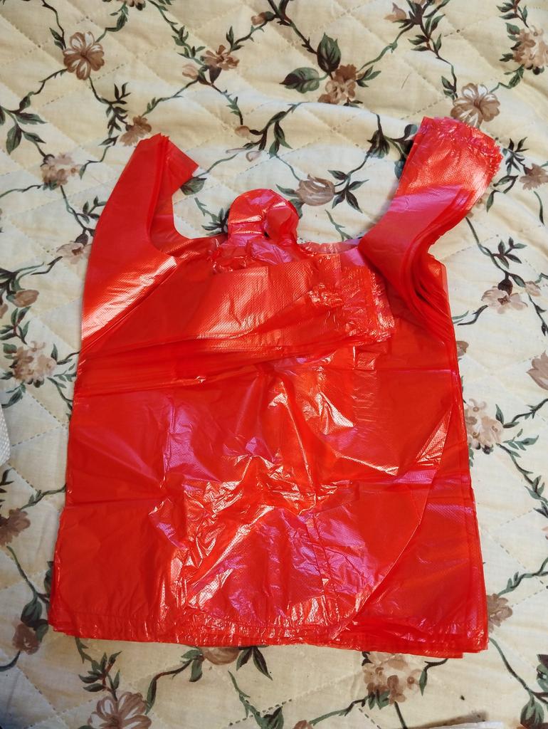 Nicht große, leuchtend rote Tüten. Aber sie riechen, sind wahrscheinlich nicht für Lebensmittel geeignet.